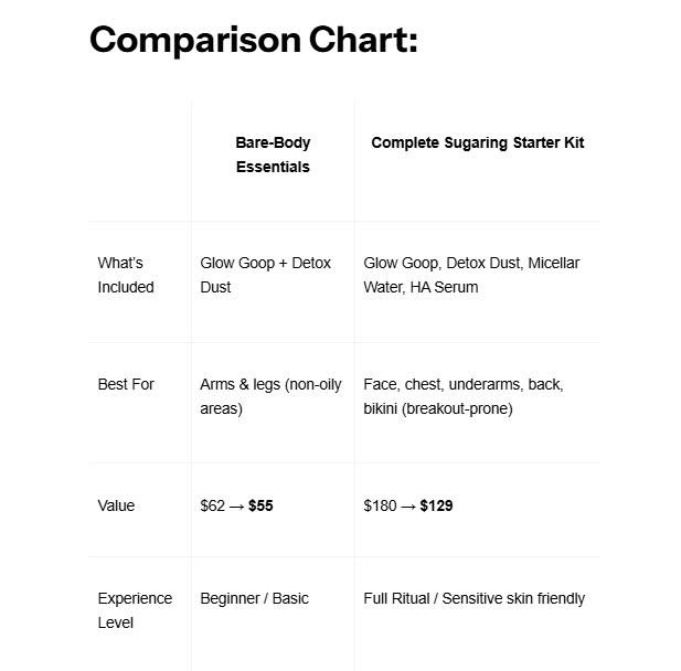 My legs and bikini line feel super smooth after using this kit. Each product has a purpose and really does their job. The packaging is so beautiful and elevated that just opening my order alone was an act in self-care. Natural ingredients, beautiful glass jars: this is ultimate upgrade to your home waxing experience. If you're considering this kit, I say treat yourself!